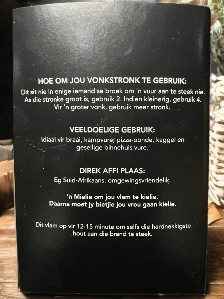 Welkom by die groot VonkStronk-markplek – die enigste plek waar jy jou virtuele mandjie kan volgooi met alles wat jou vuurmaak-hart begeer. Van slim braaigoeters tot vonkelvars gadgets wat jou lewe makliker (en lekkerder) maak – ons het dit alles net hier.